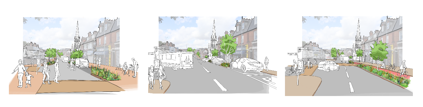 Improvements could include more trees and planting, new places to sit, improved signage and wayfinding, artwork and storytelling features, wider pavements, protected cycle lanes, cycle parking, better bus stops and accessibility measures.